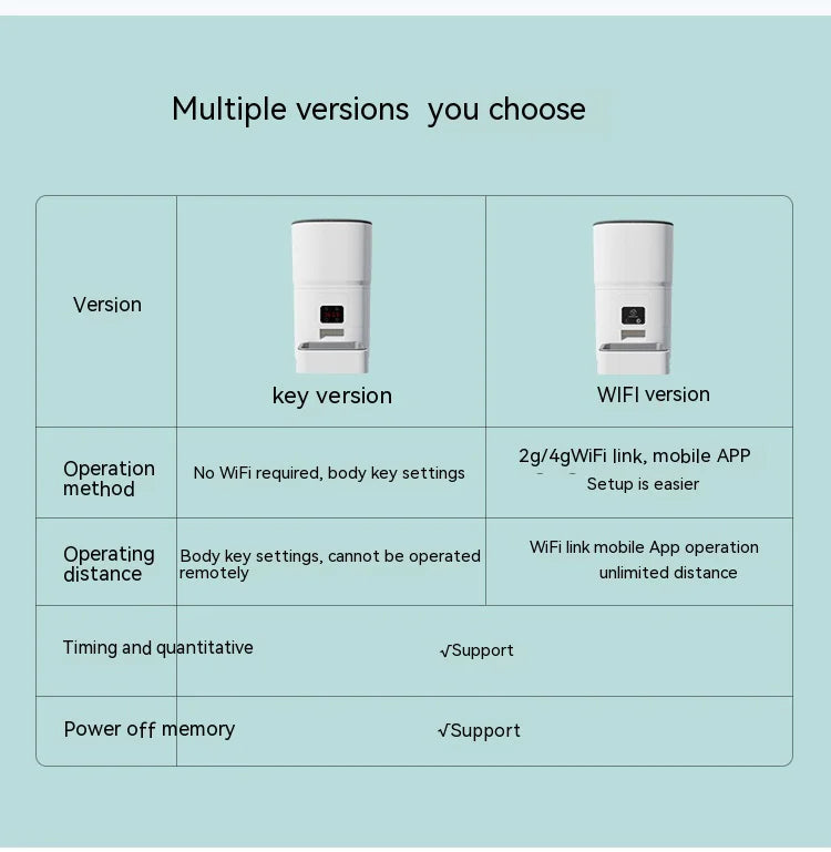 Perfecto para dueños de mascotas ocupados, el comedero automático ofrece una solución confiable e inteligente para garantizar que la alimentación de su gato se realice siempre a tiempo. ¡Consiga una hora de comer sin estrés y eficiente con este producto esencial para el cuidado de mascotas de vanguardia!
